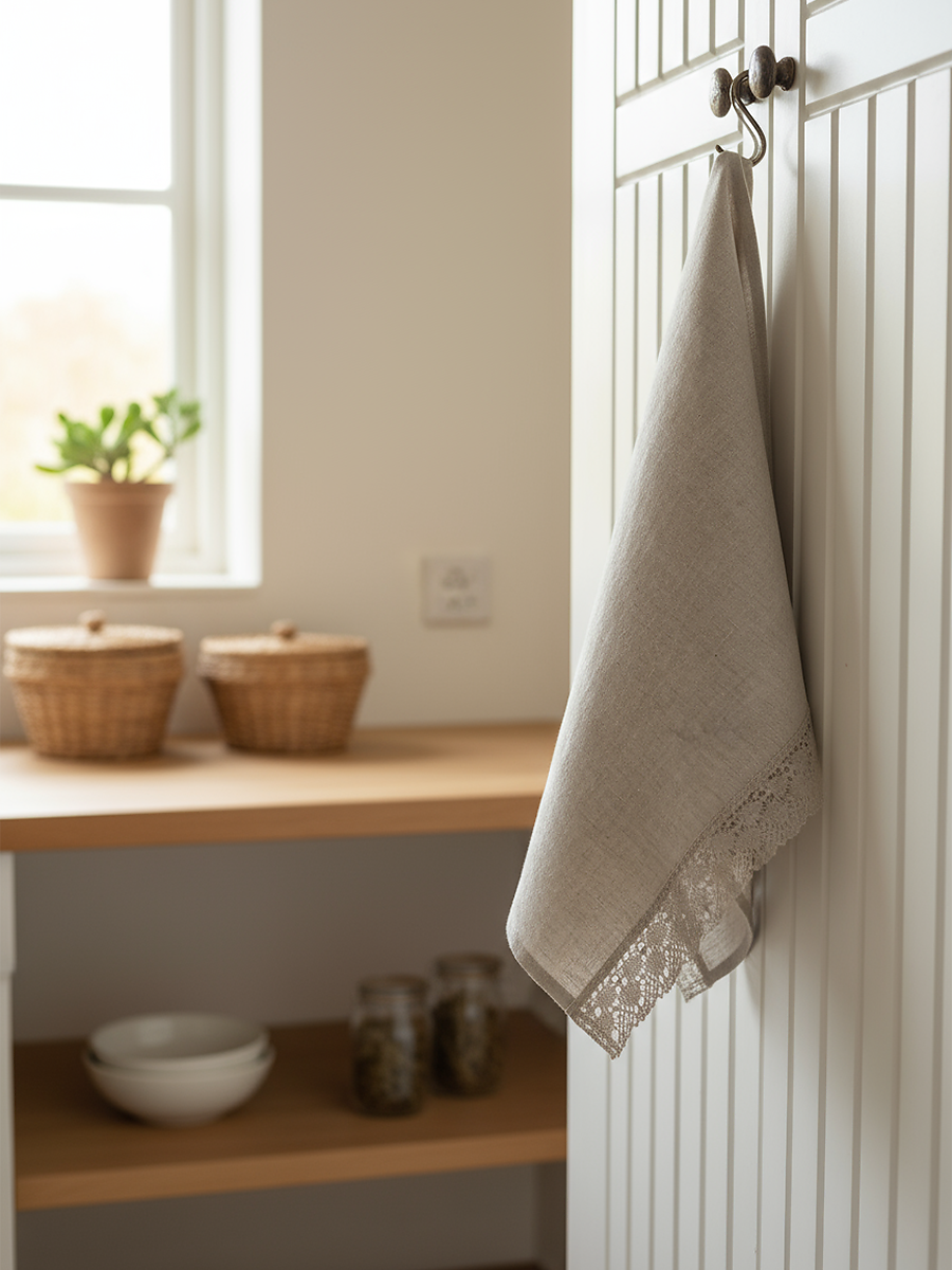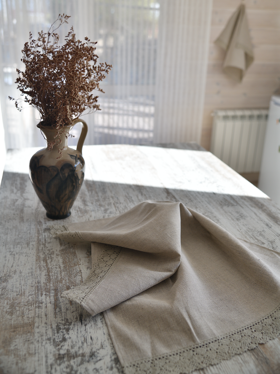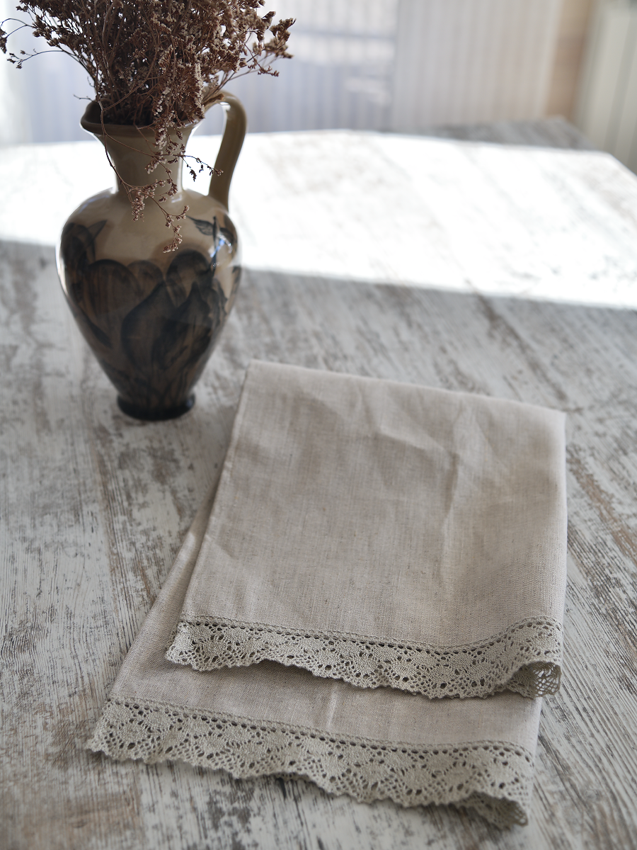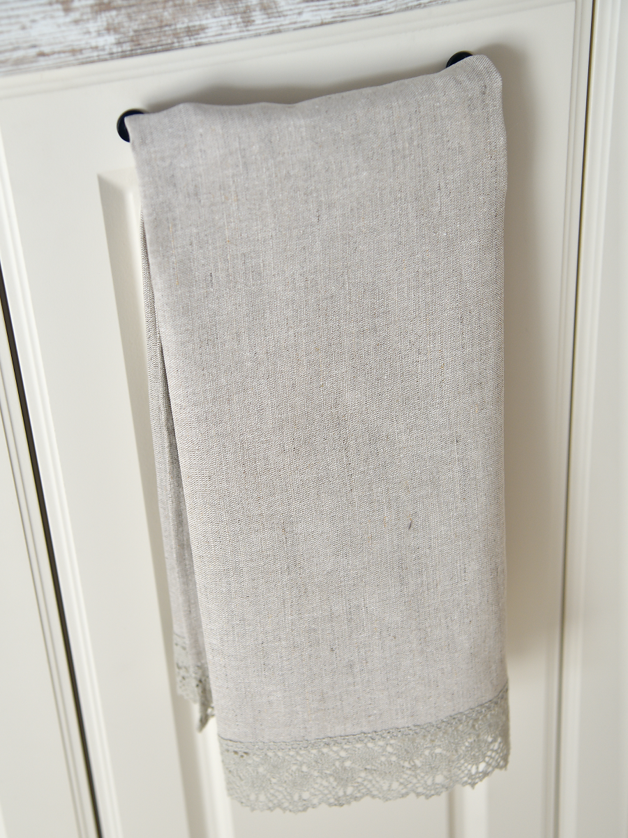 Полотенце с кружевом, цвет светло-серый