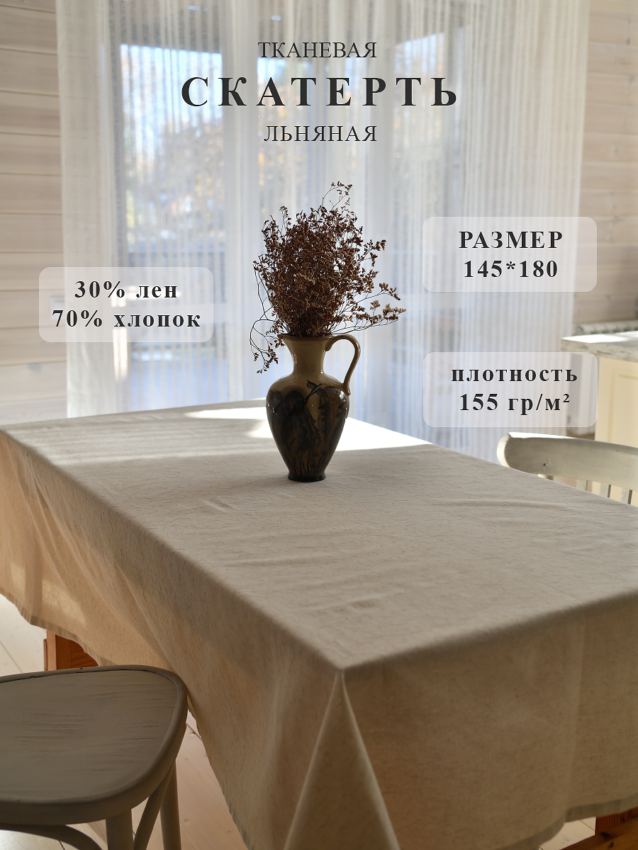 Скатерть "Поэма", льняная, 145*180 см, цвет светло-серый