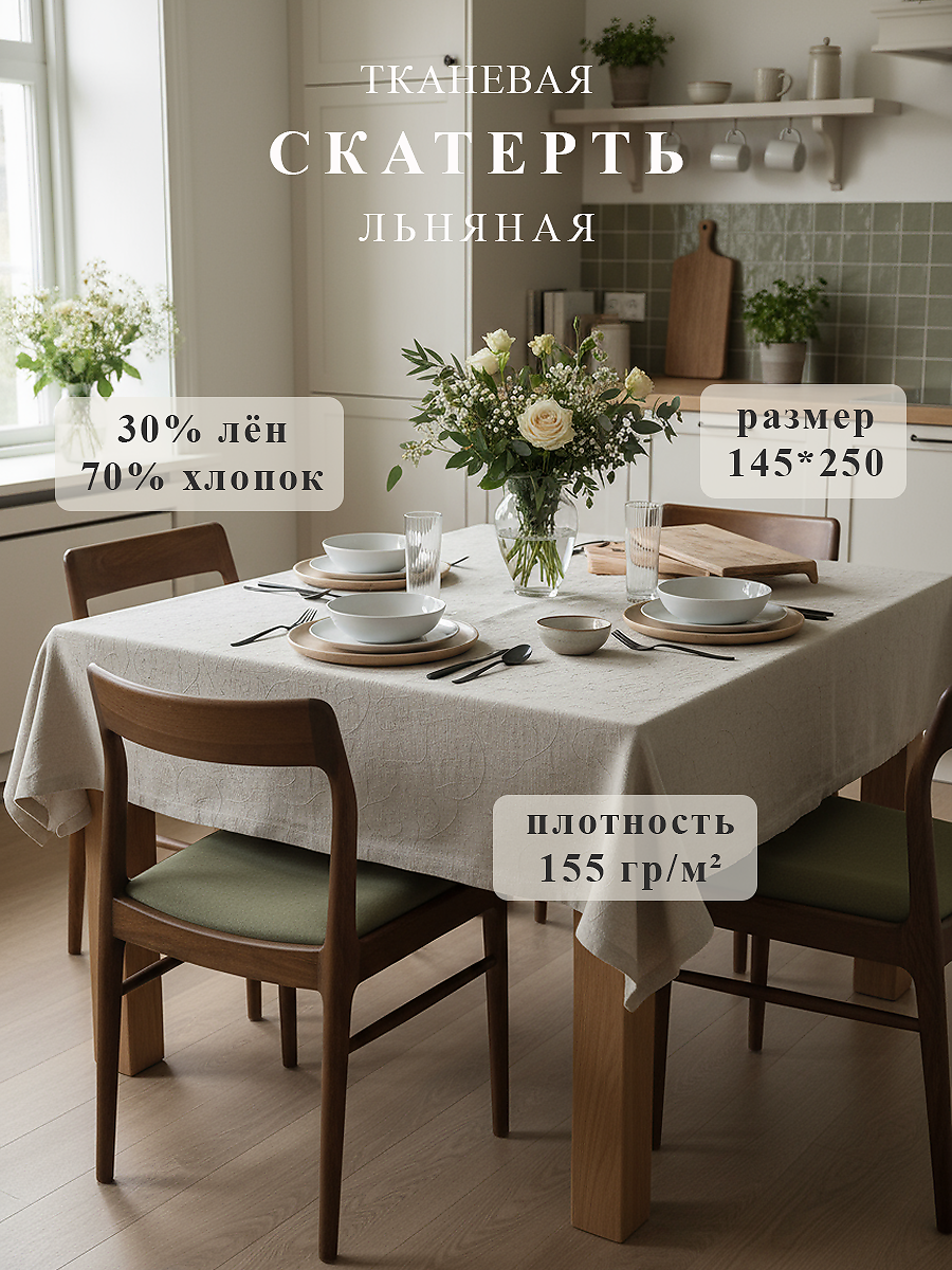 Скатерть "Поэма", льняная, 145*250 см, цвет светло-серый
