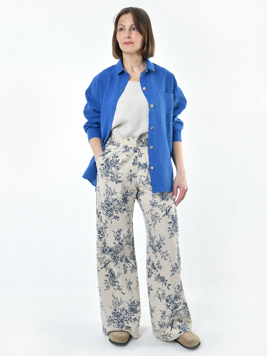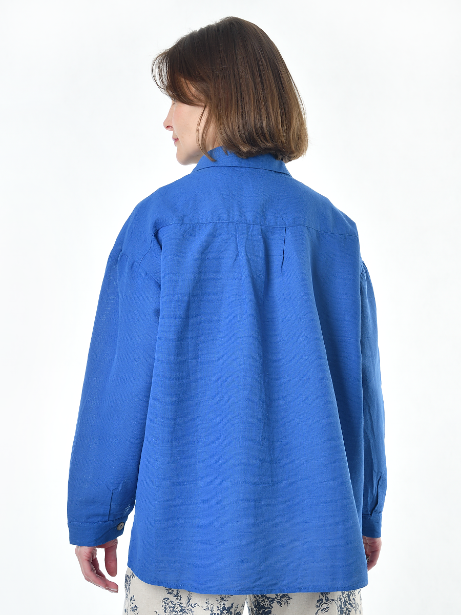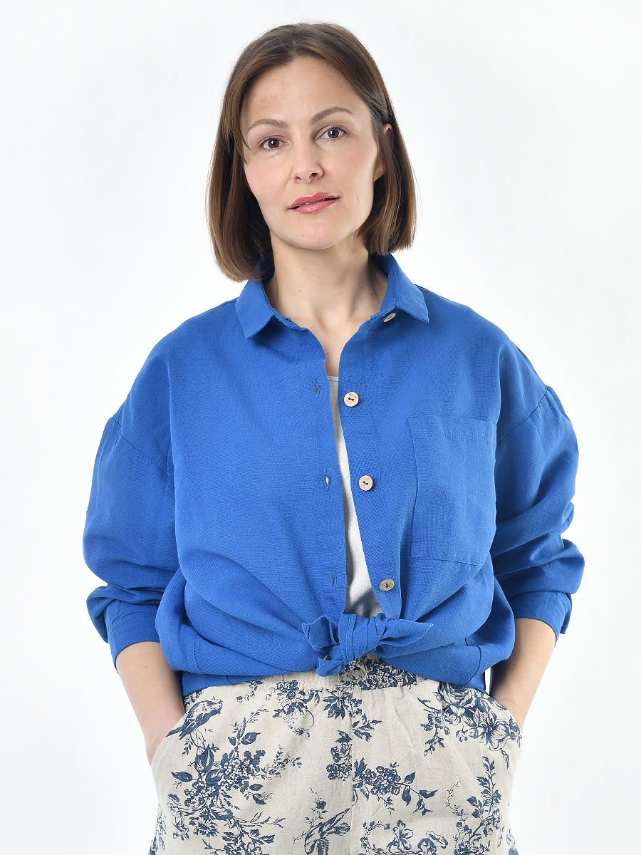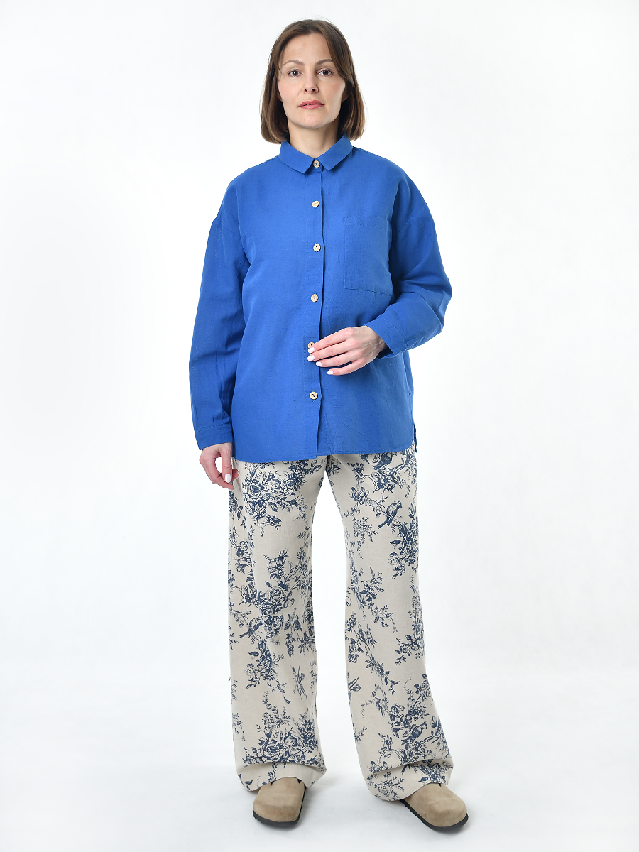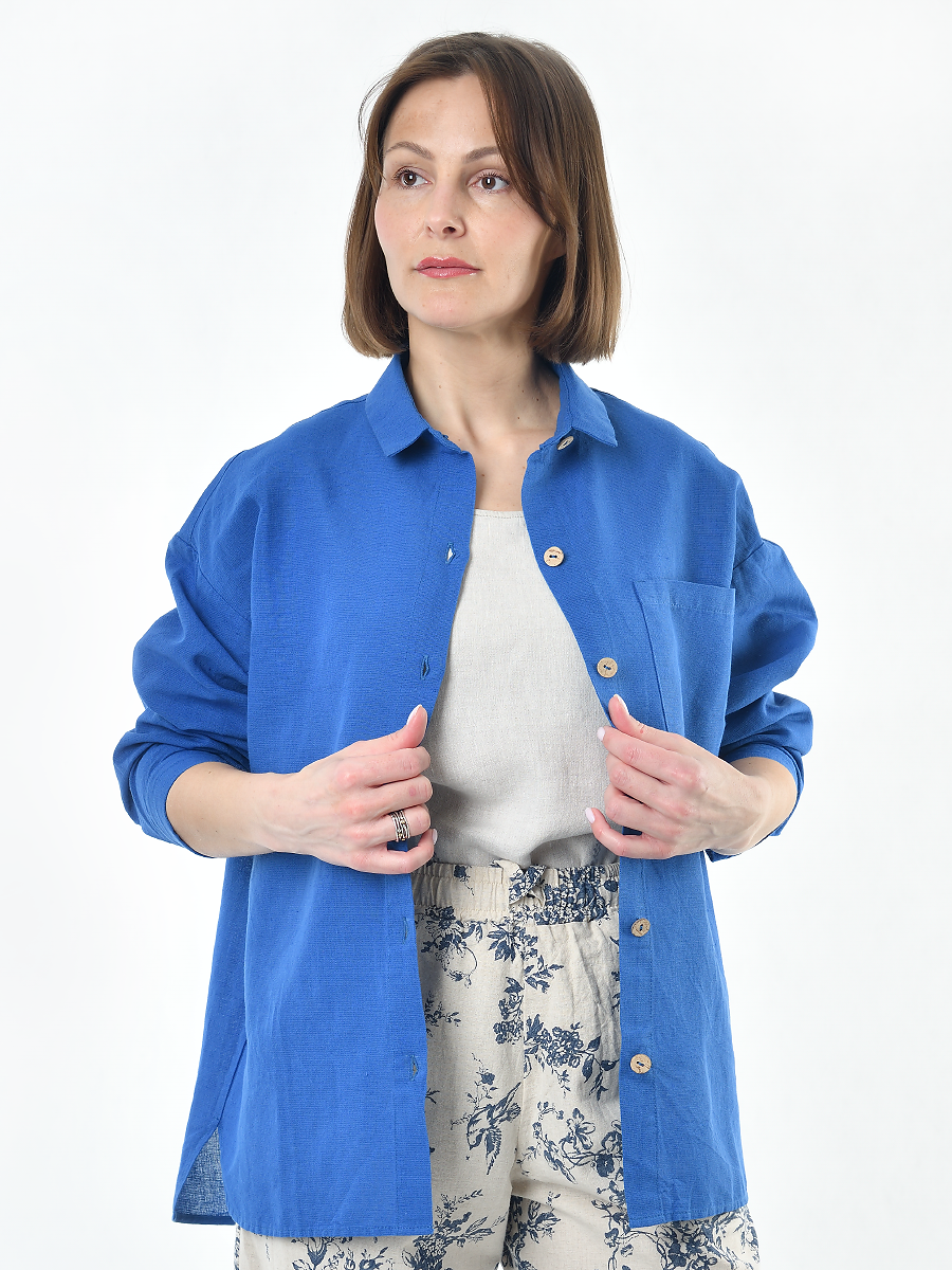 Блузка женская из льна #046, цвет светло-синий, изготавливается из ткани с составом 50% лен, 50% хлопок. После изготовления блузка проходит процесс химического умягчения.
