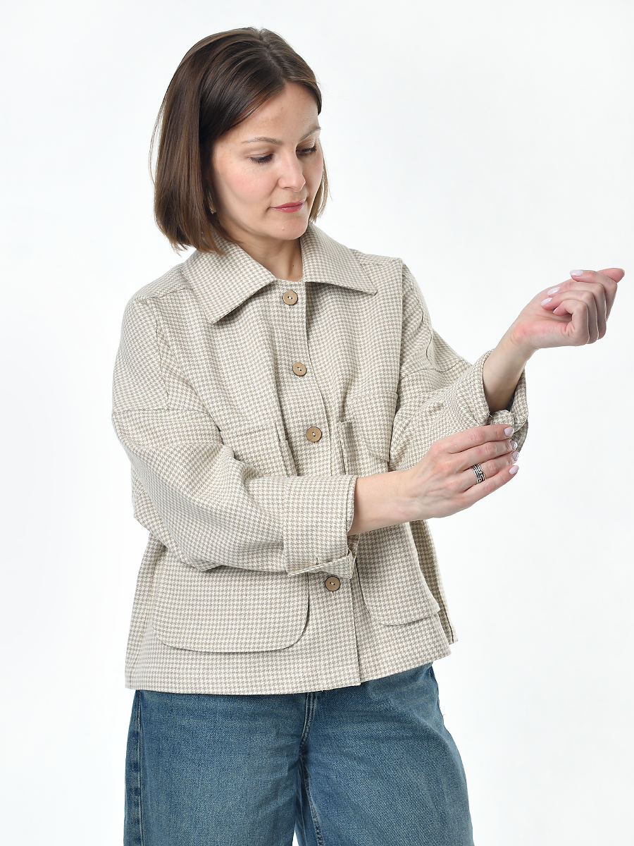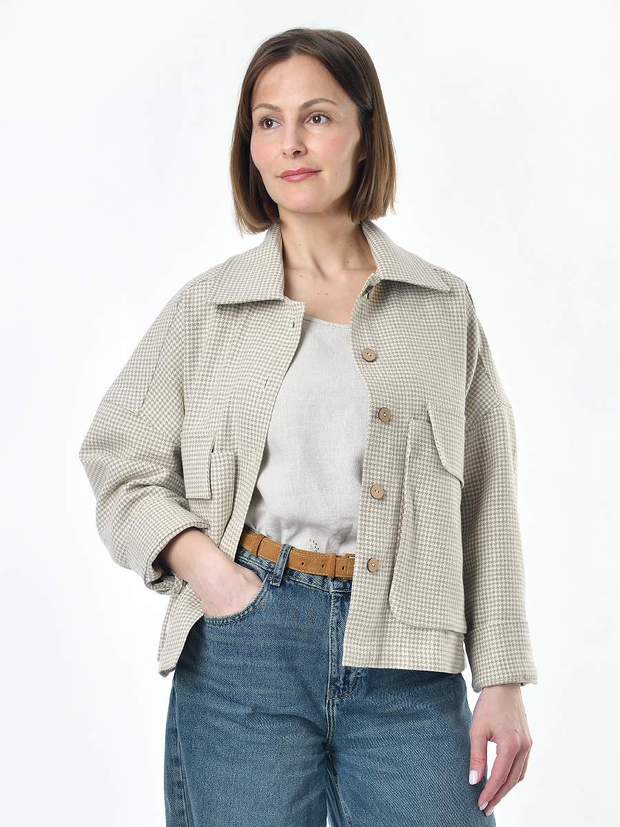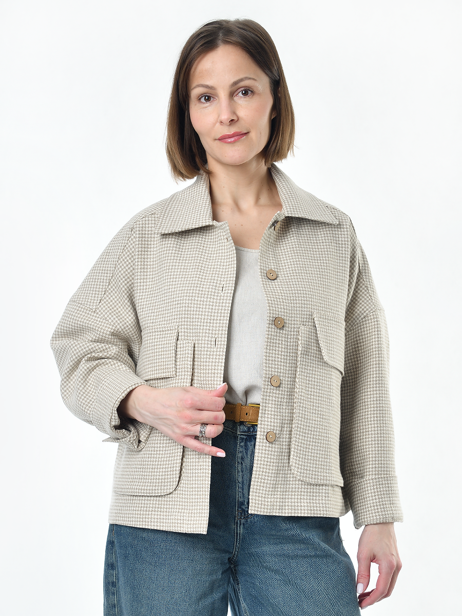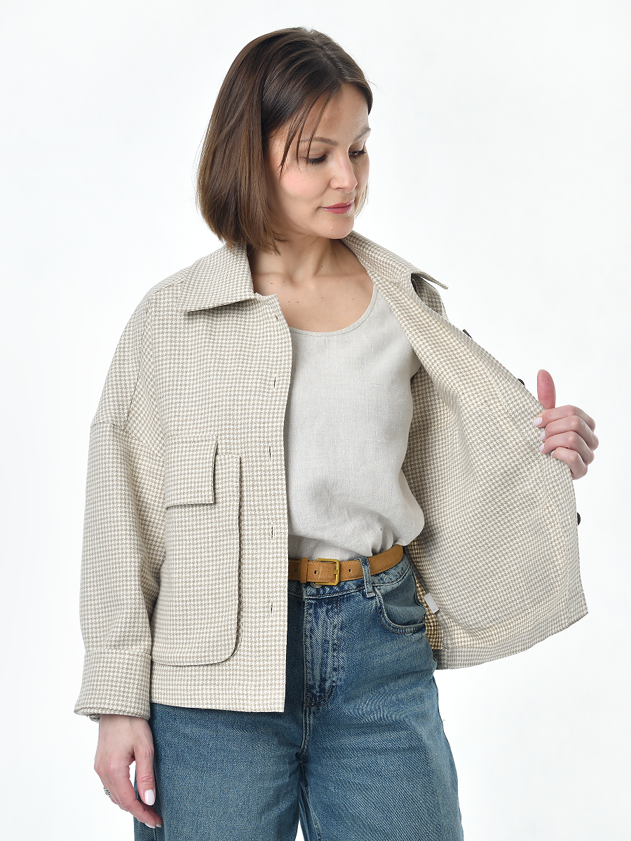 Жакет из льна женский #025, ткань "Гусиная лапка"