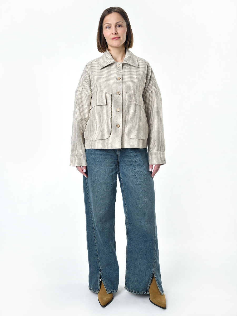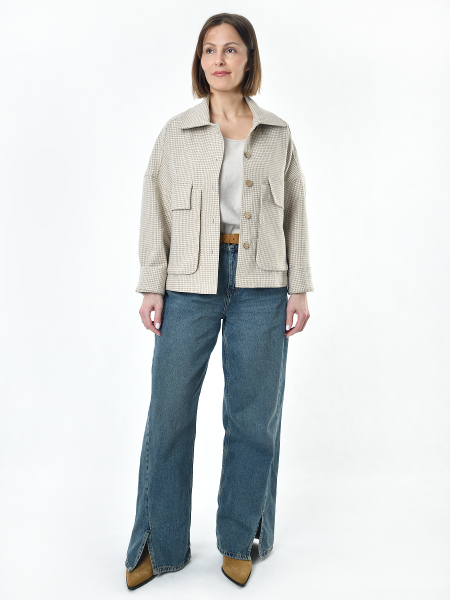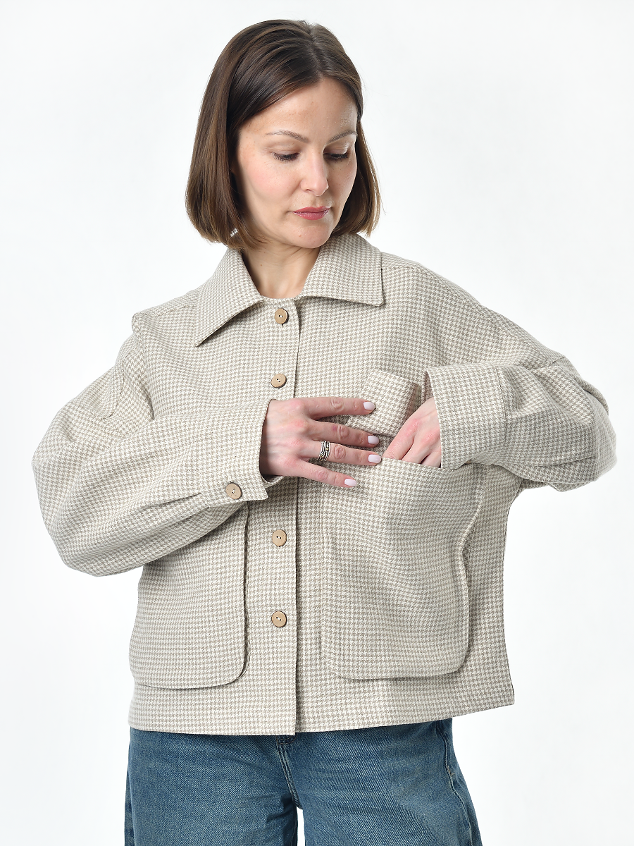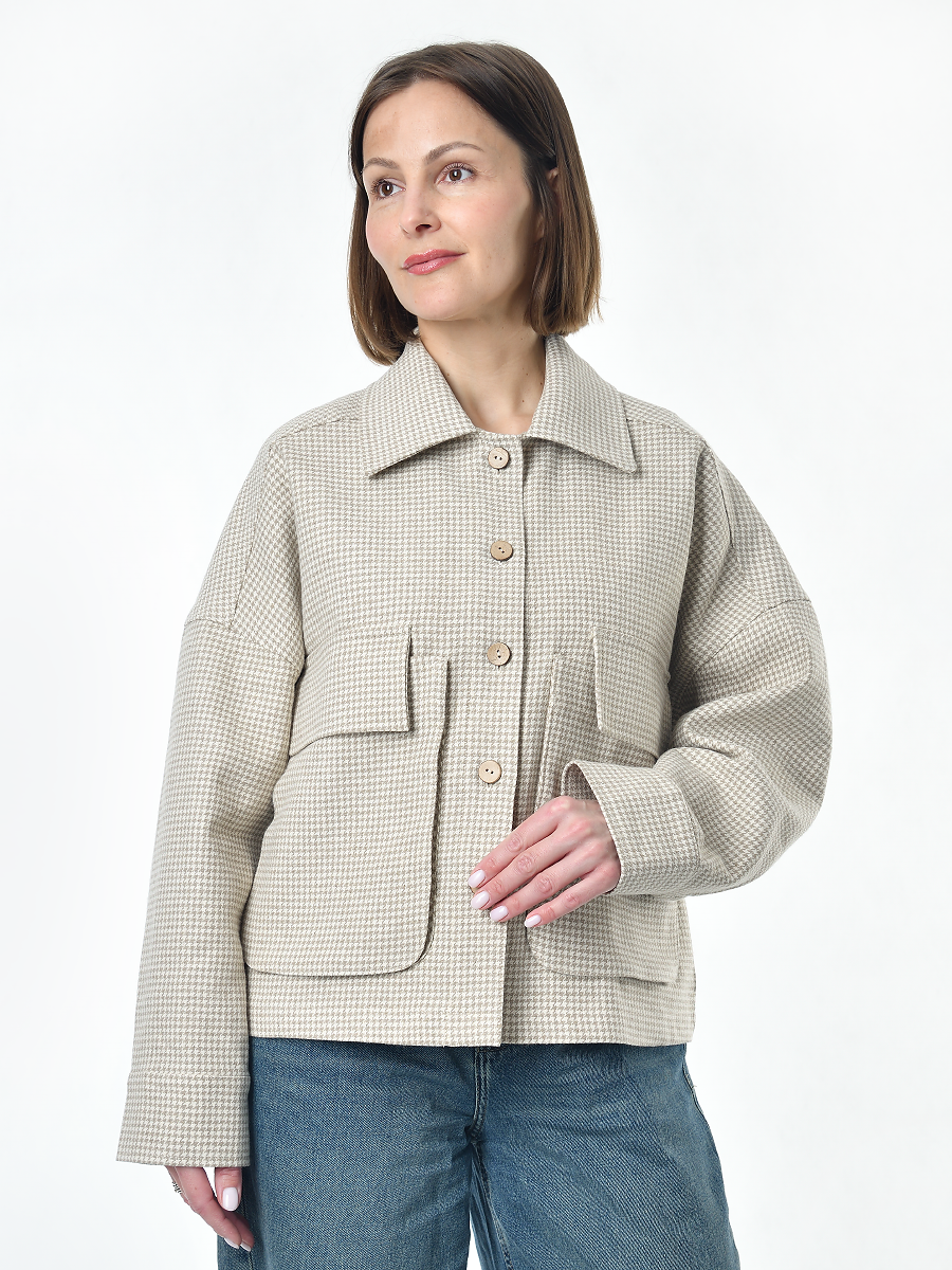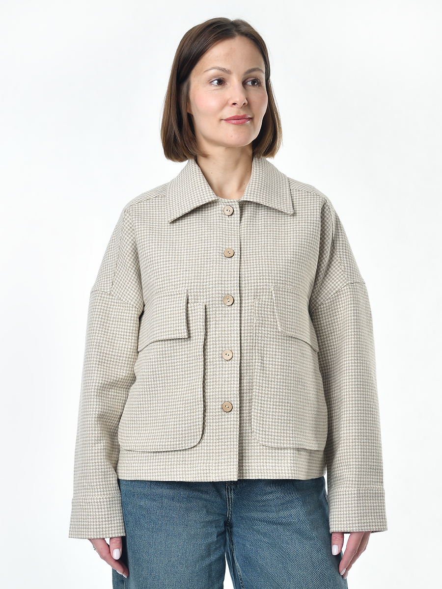 Жакет из льна женский #025, ткань "Гусиная лапка"