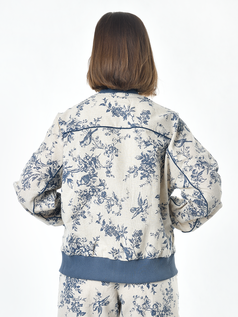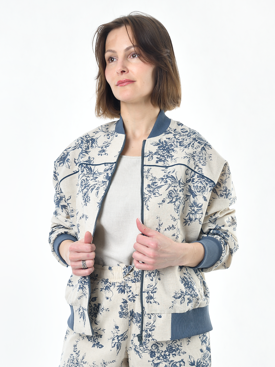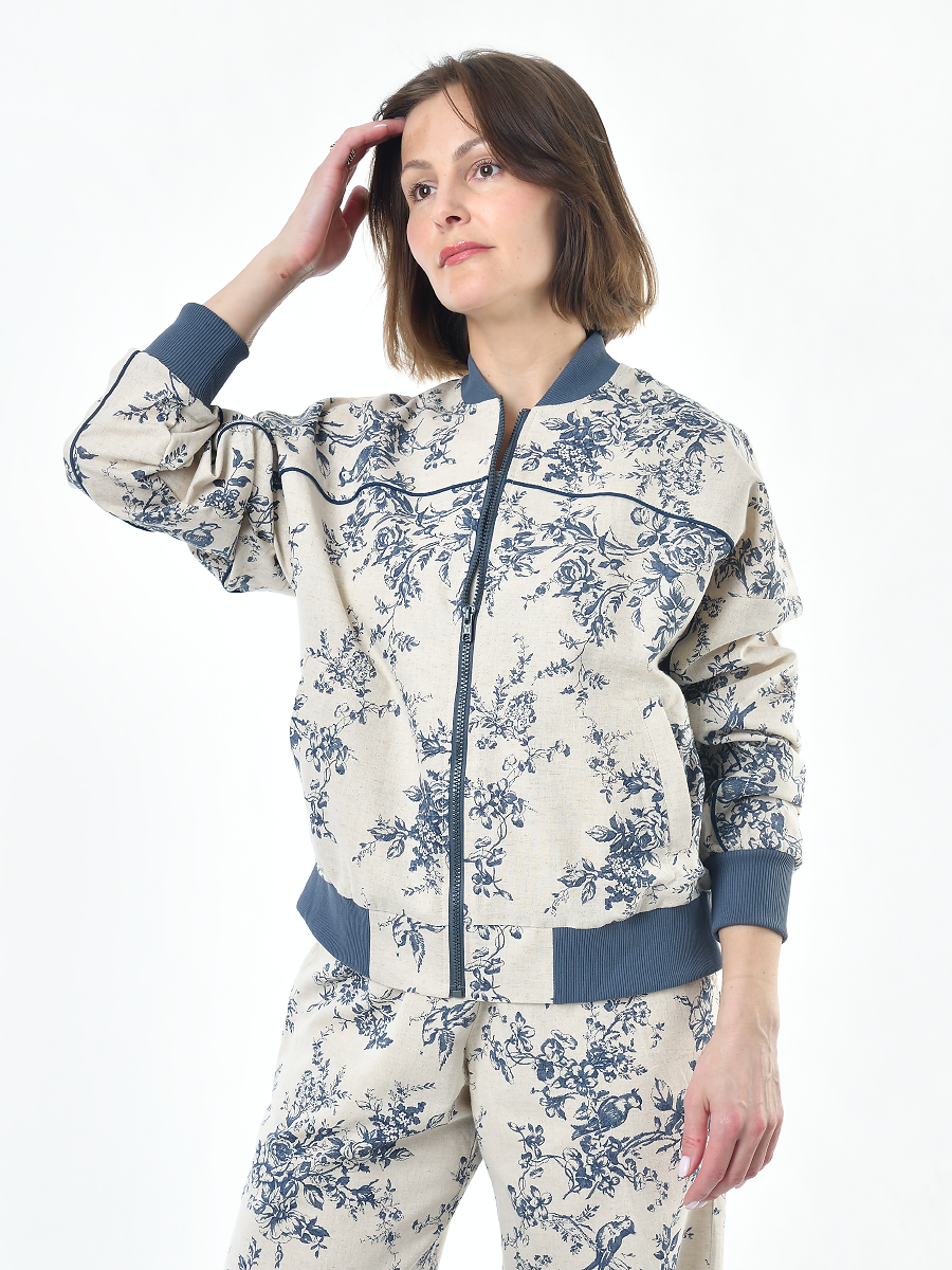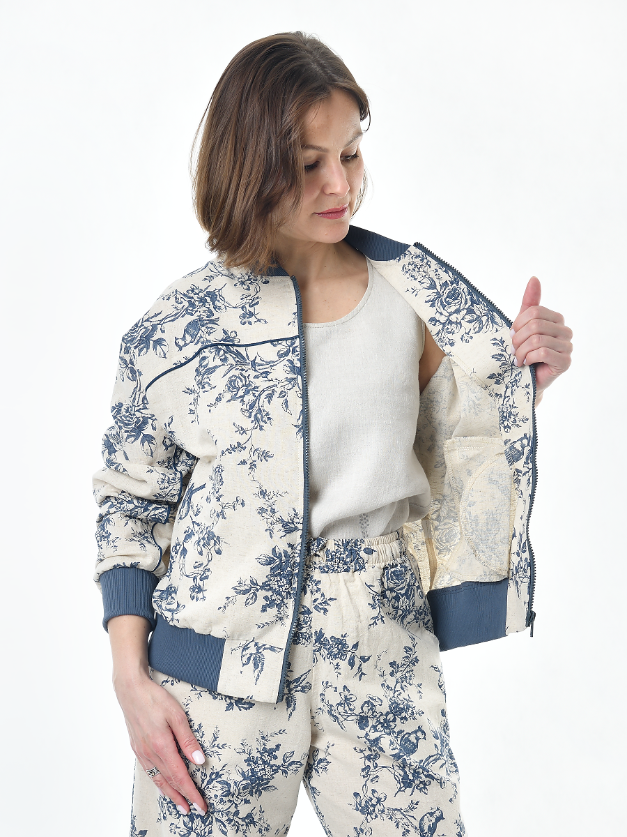 Жакет из льна женский #026, ткань "Райский сад"