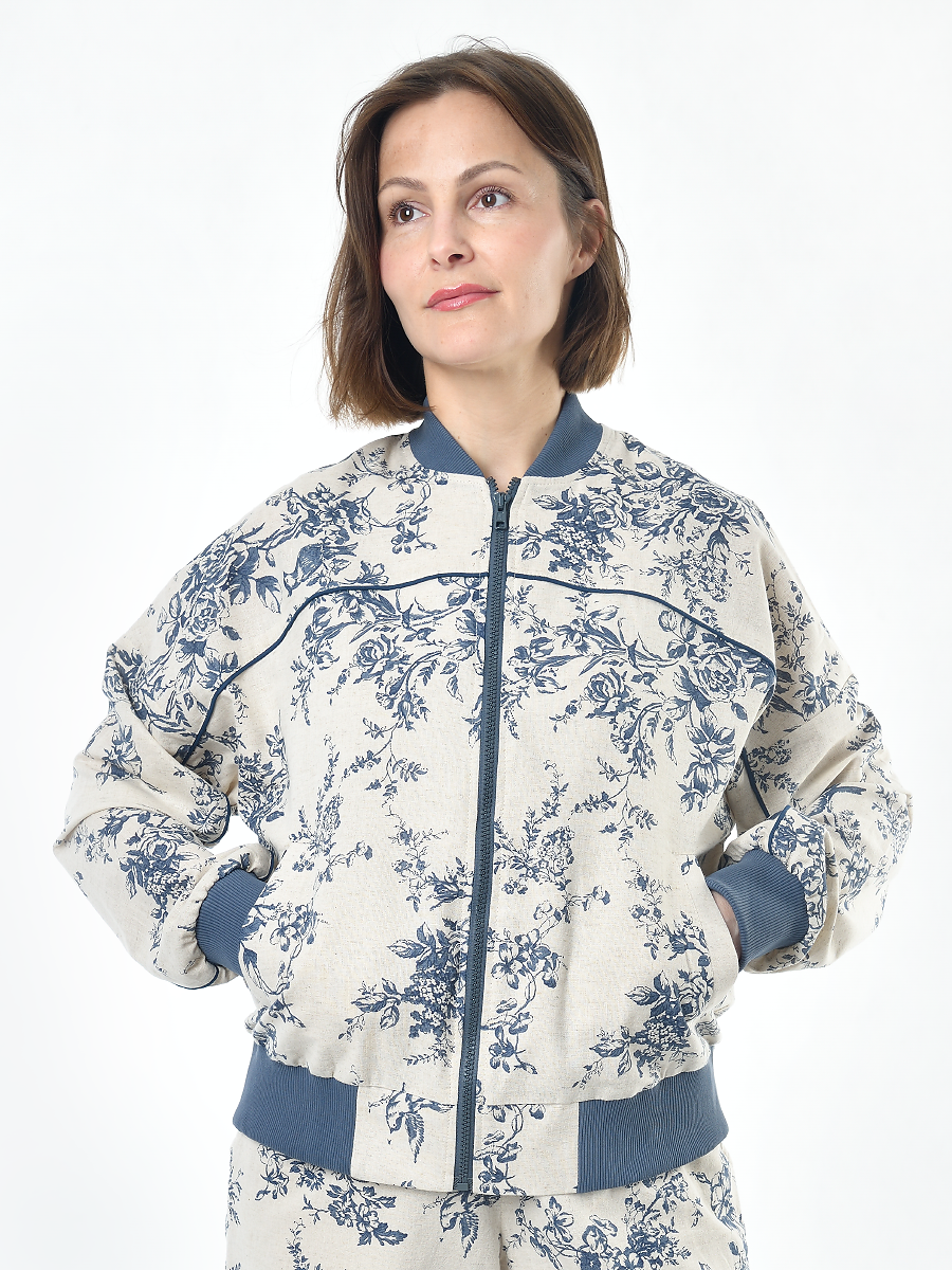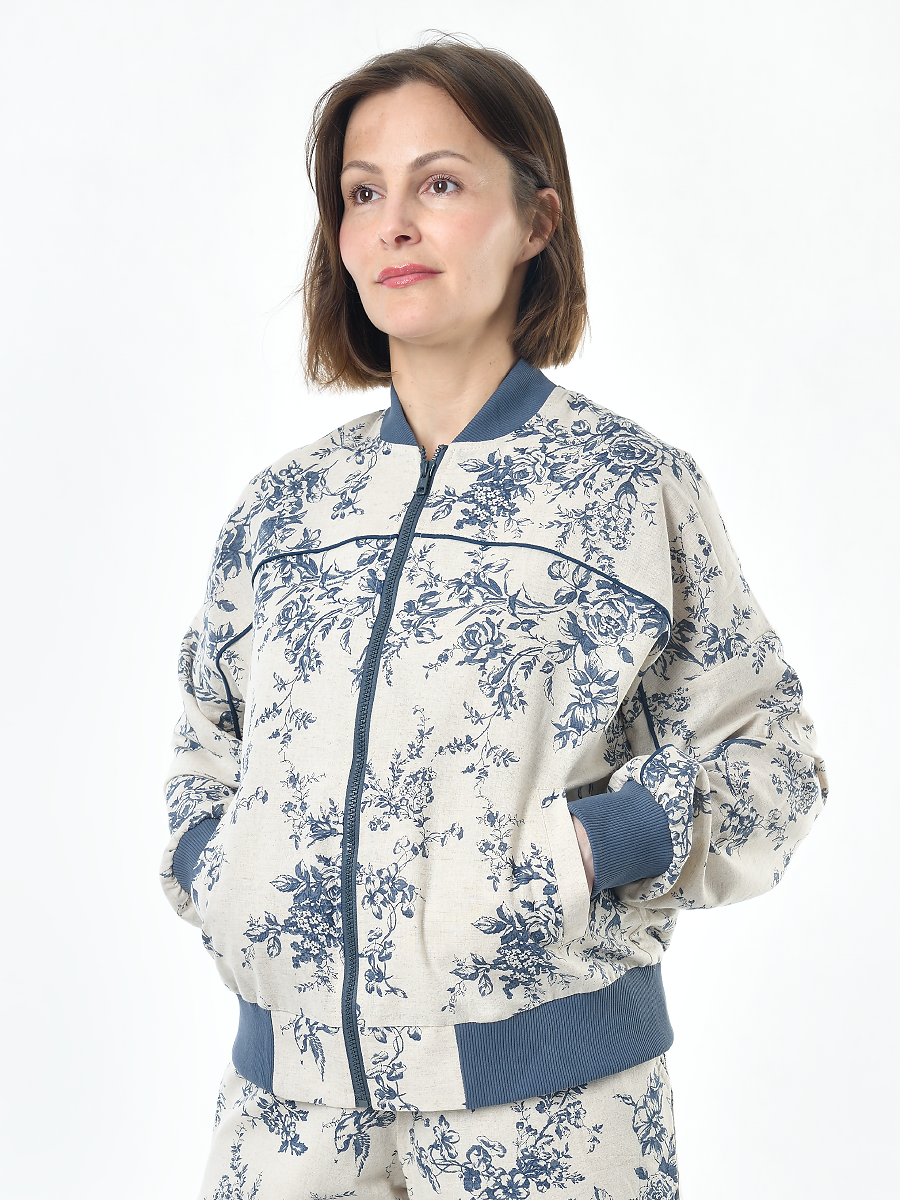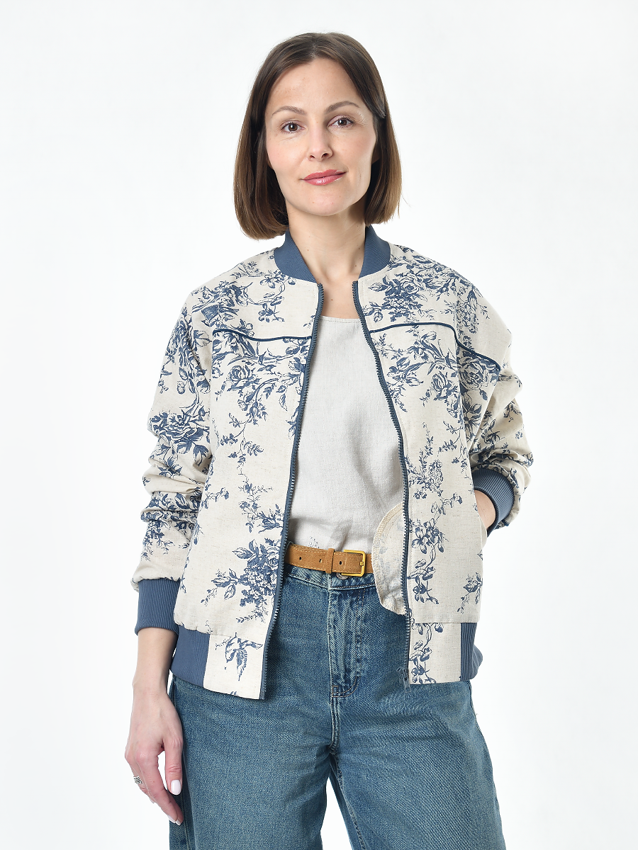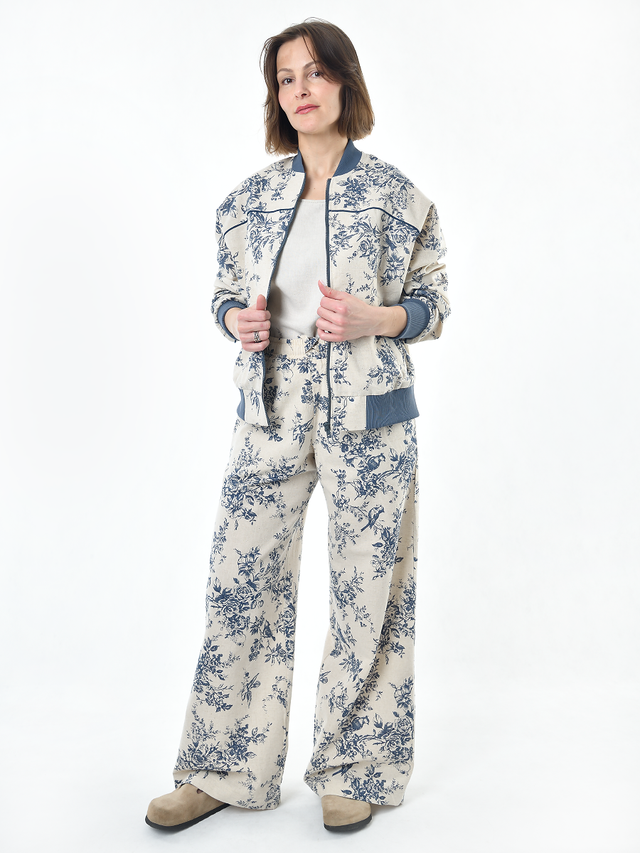 Жакет из льна женский #026, ткань "Райский сад"