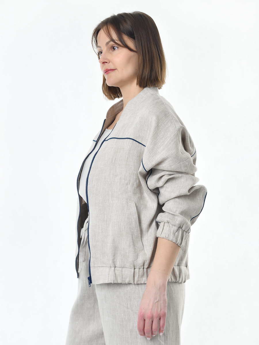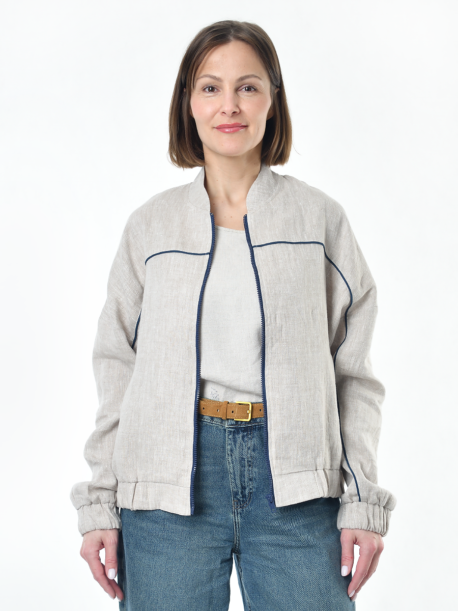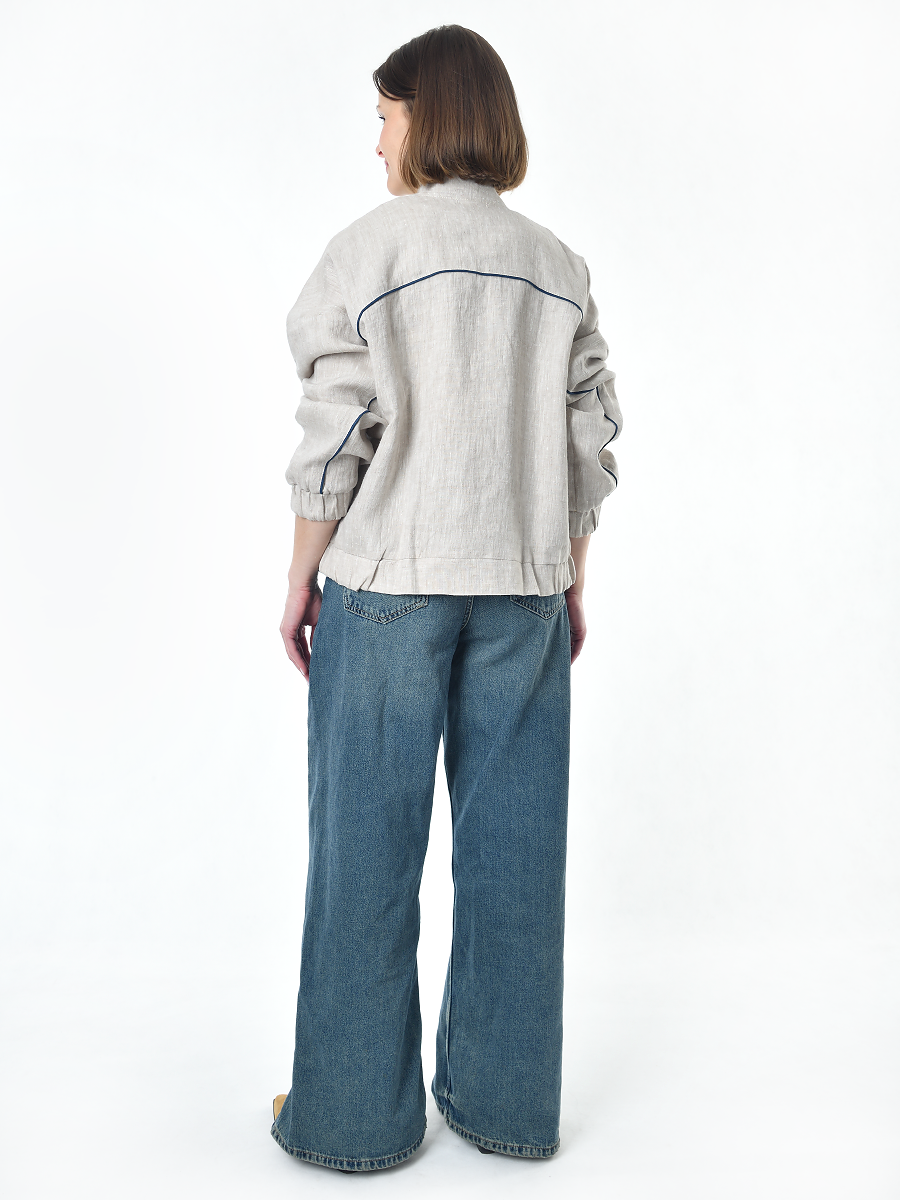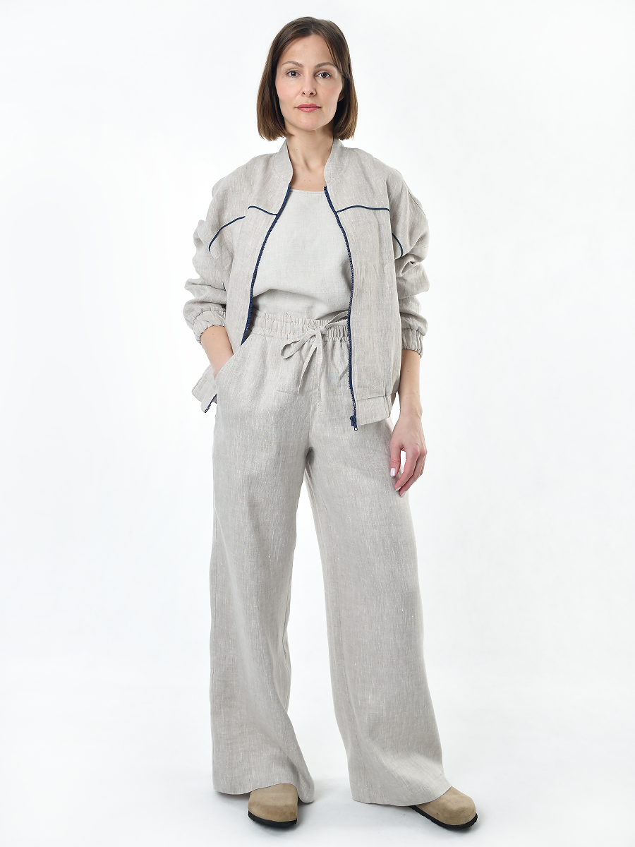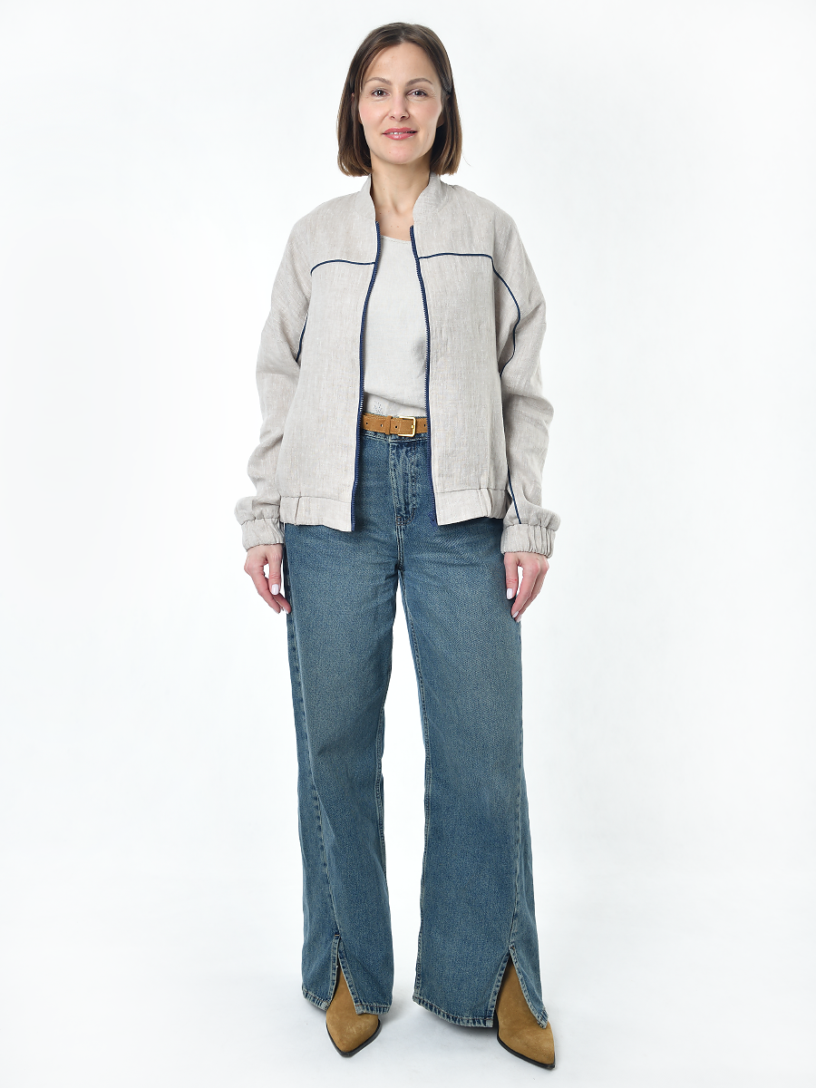 Жакет выполнен из ткани с составом 50% лен, 50% хлопок.