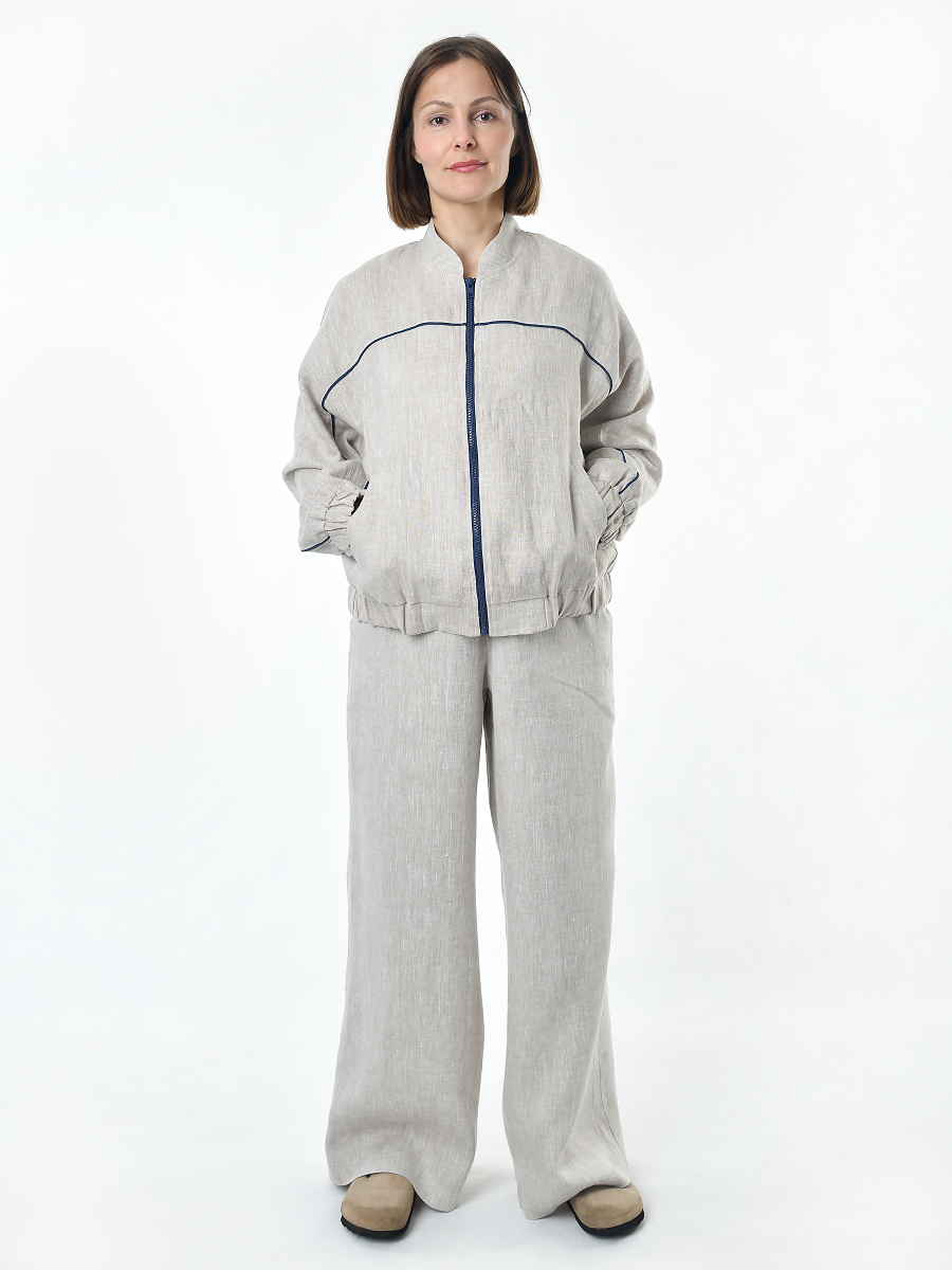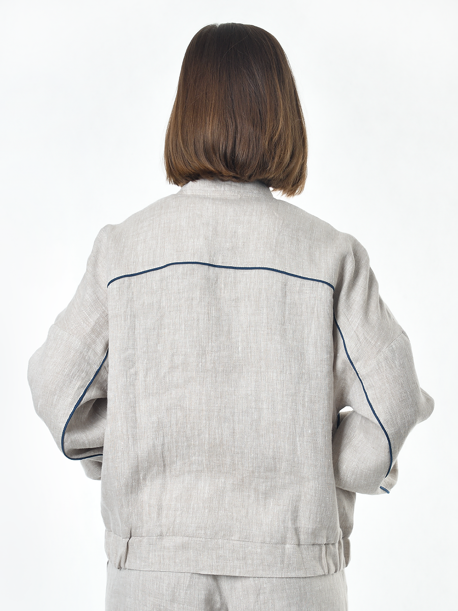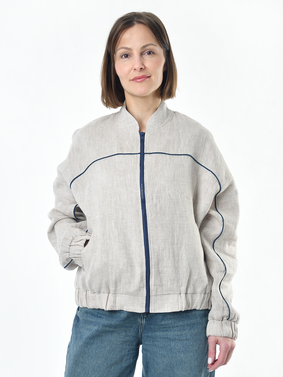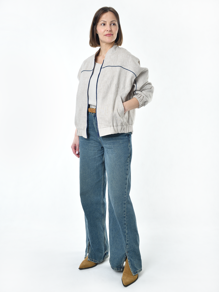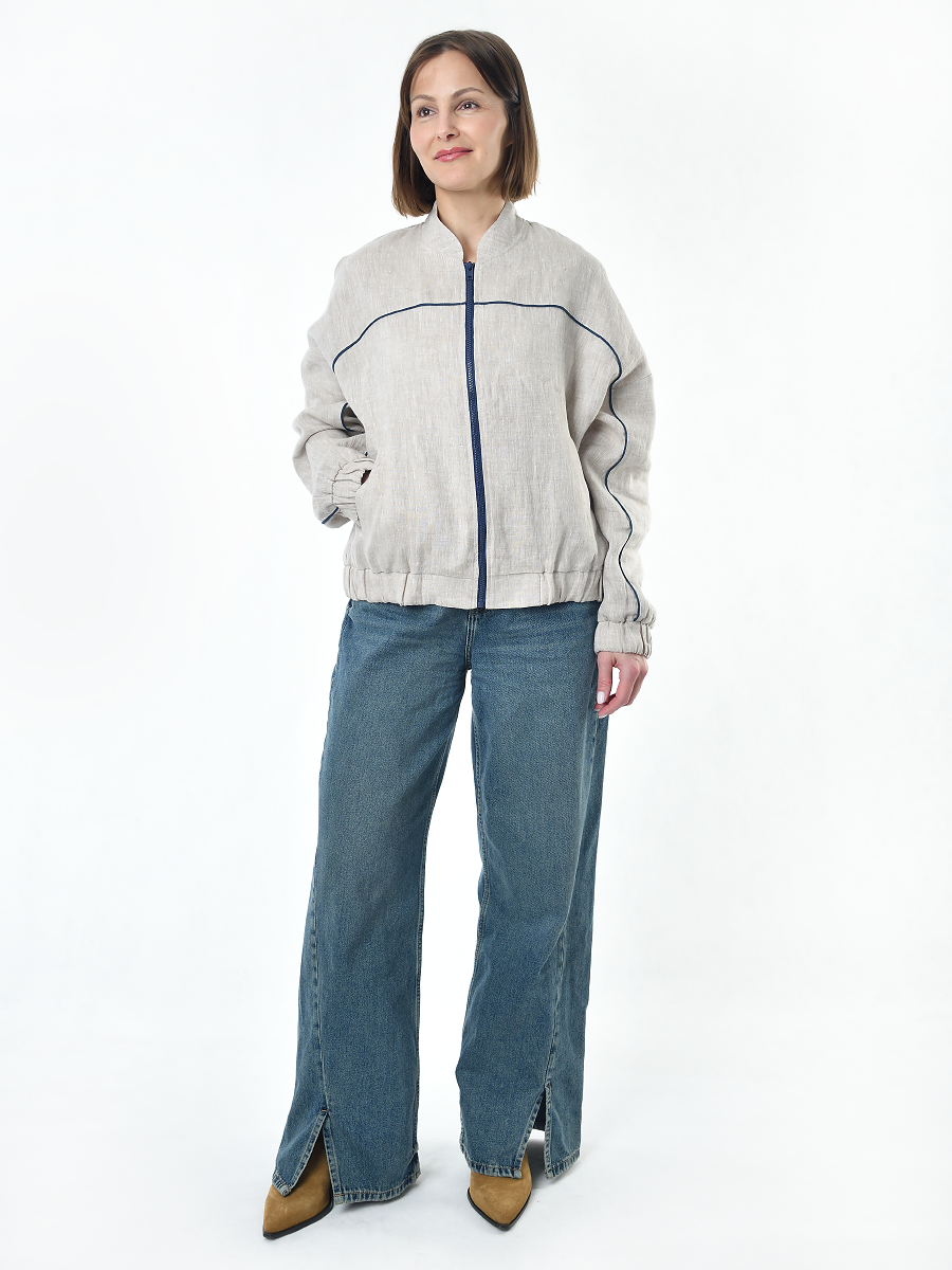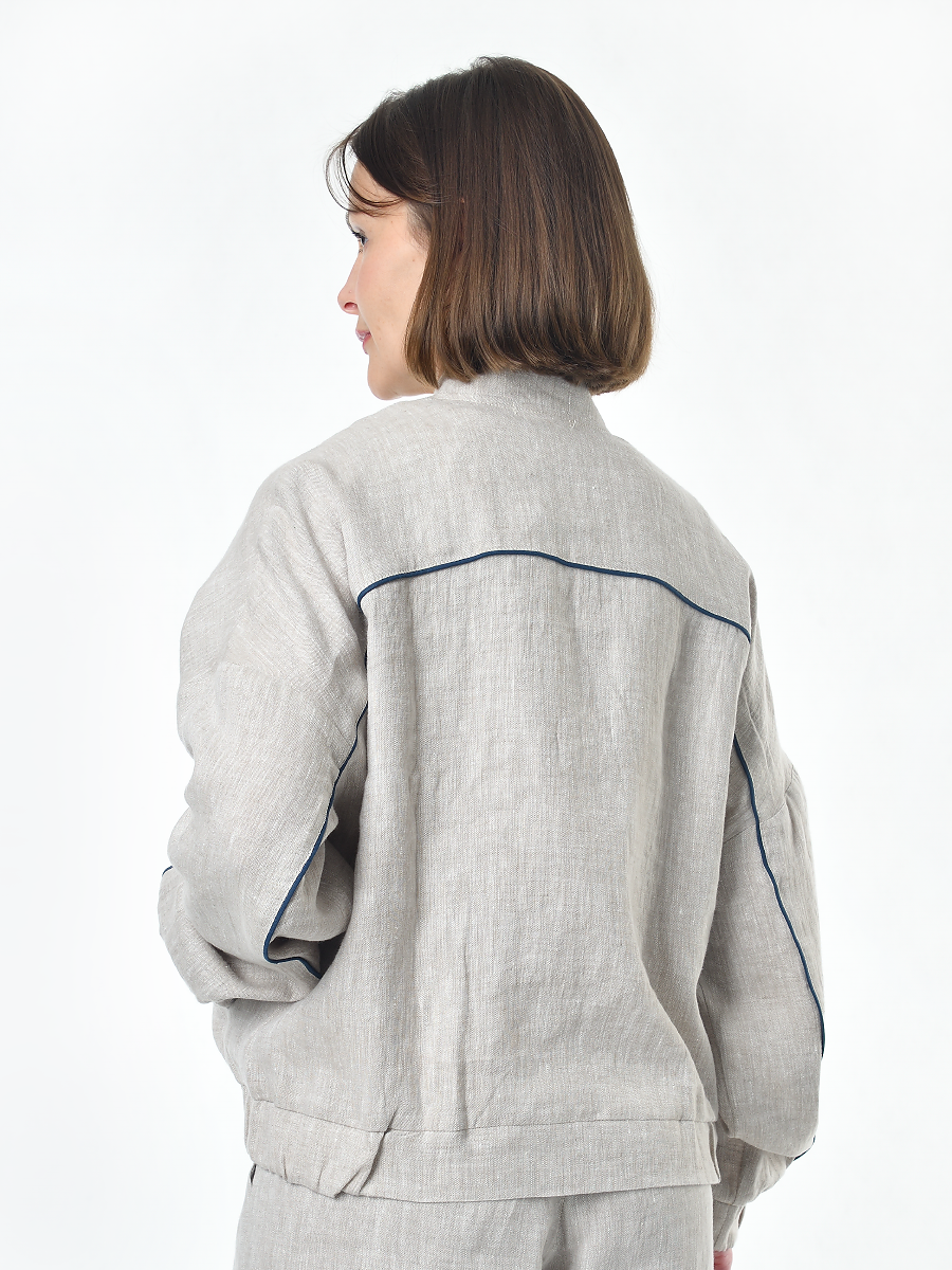 Жакет выполнен из ткани с составом 50% лен, 50% хлопок.