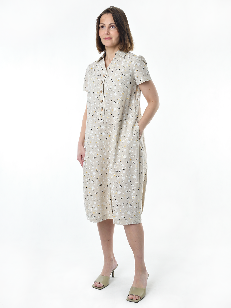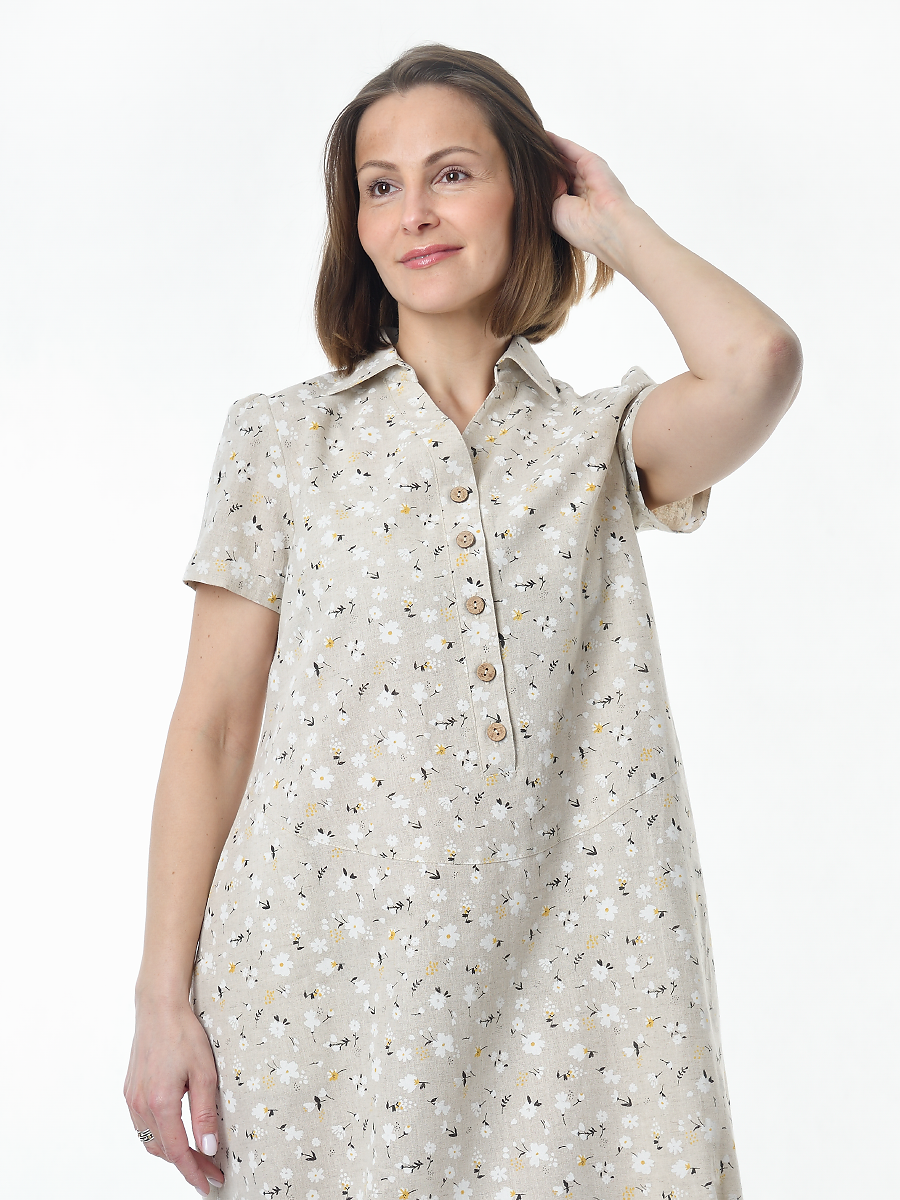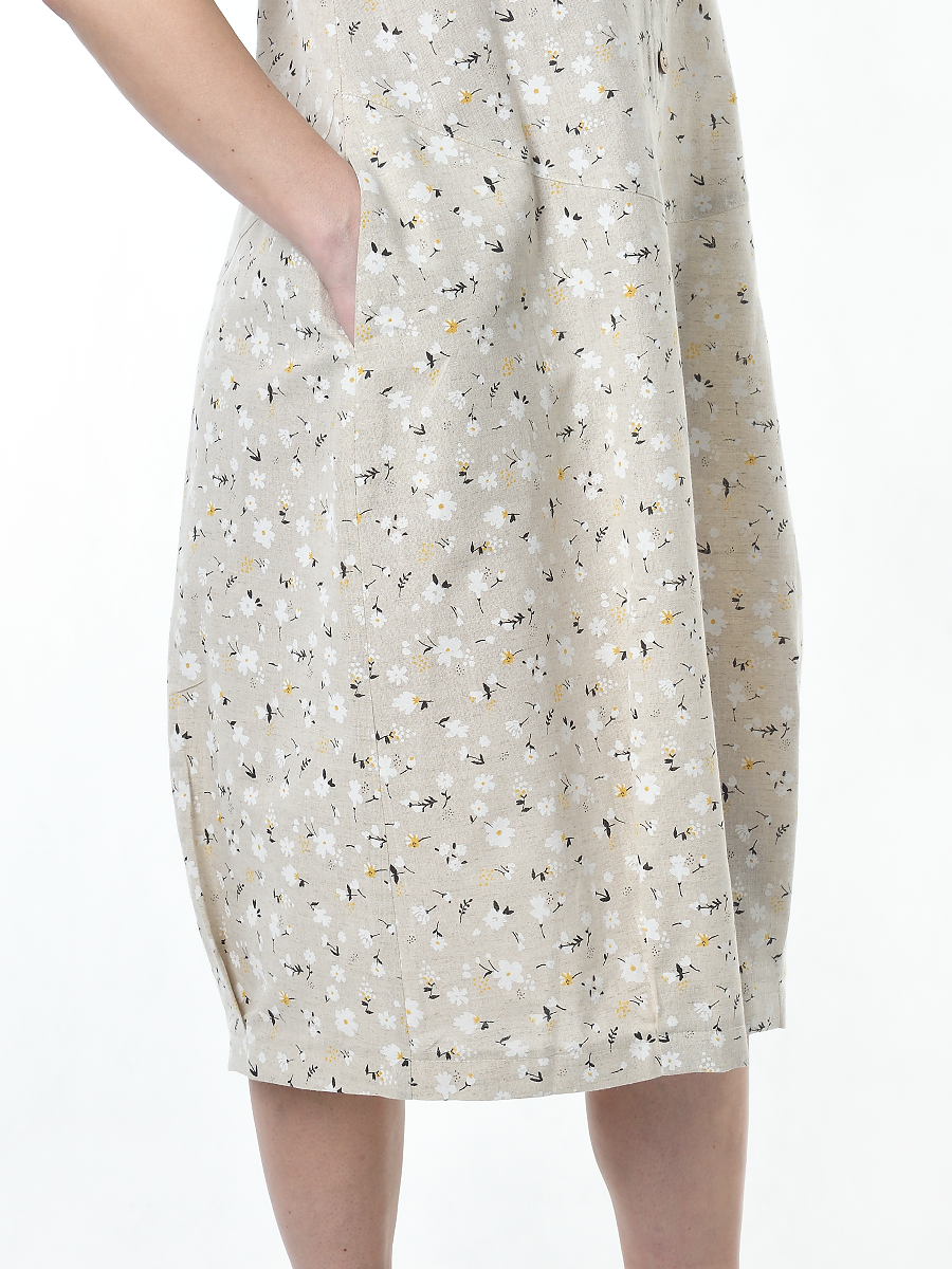Платье льняное женское #115, "ромашки" изготавливается из ткани с составом 50% лён, 50% хлопок.