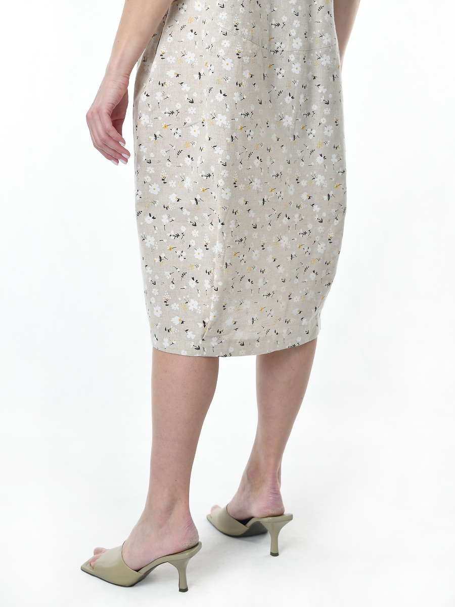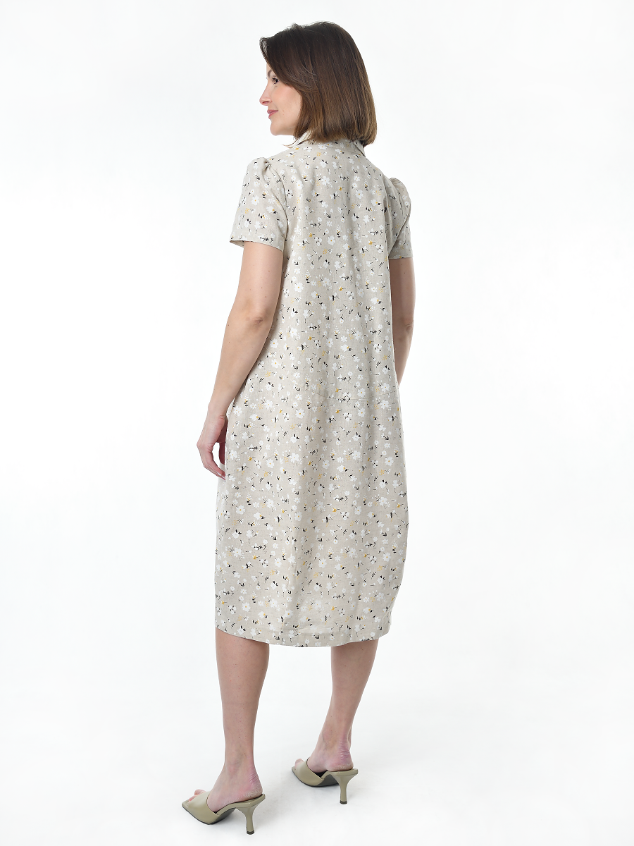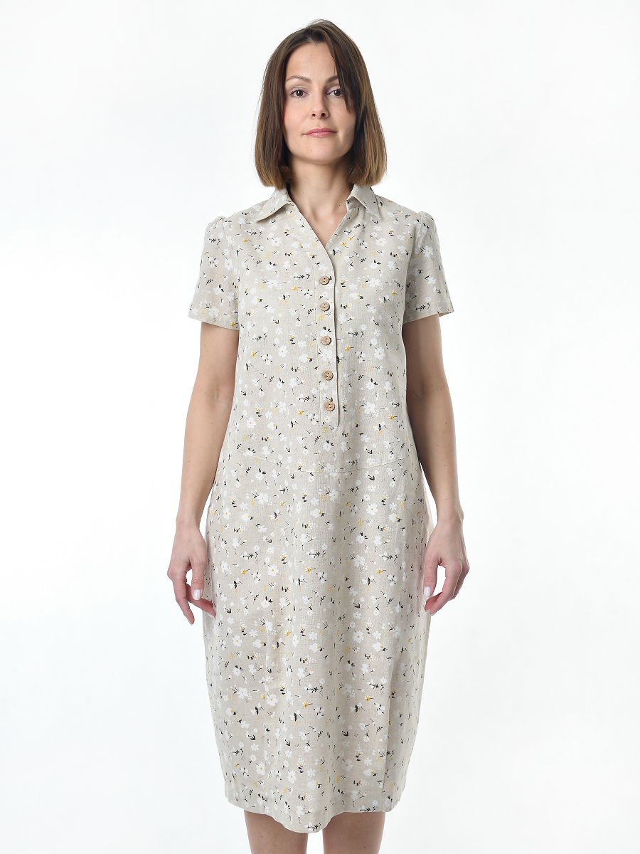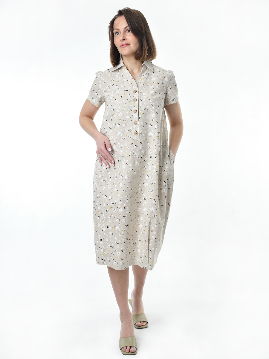 Платье льняное женское #115, "ромашки" изготавливается из ткани с составом 50% лён, 50% хлопок.