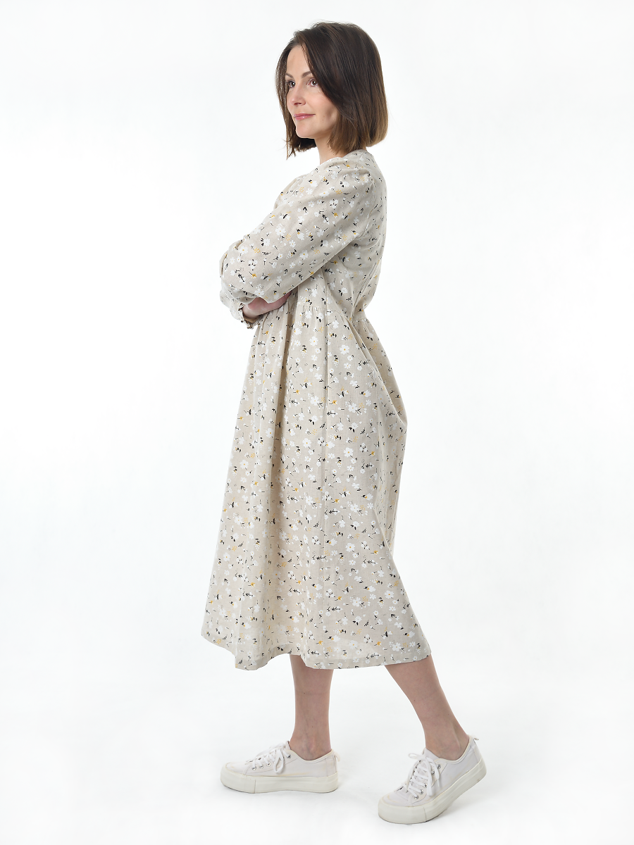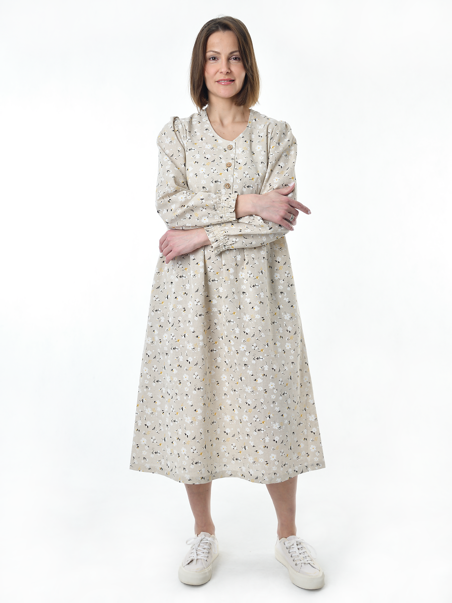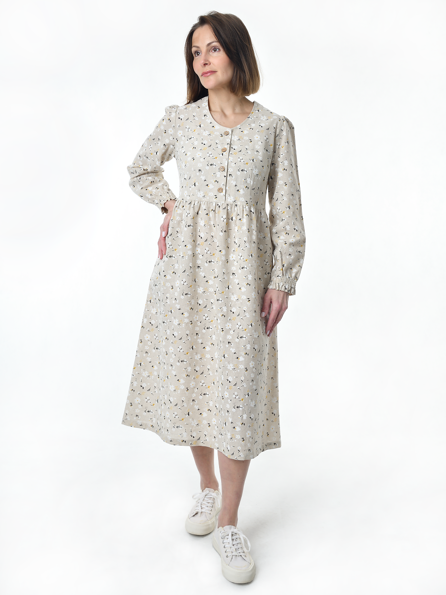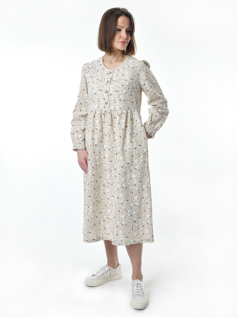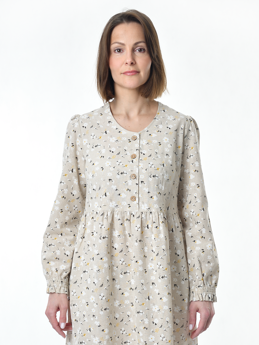 Платье льняное женское #117, "ромашки" изготавливается из ткани с составом 50% лён, 50% хлопок.