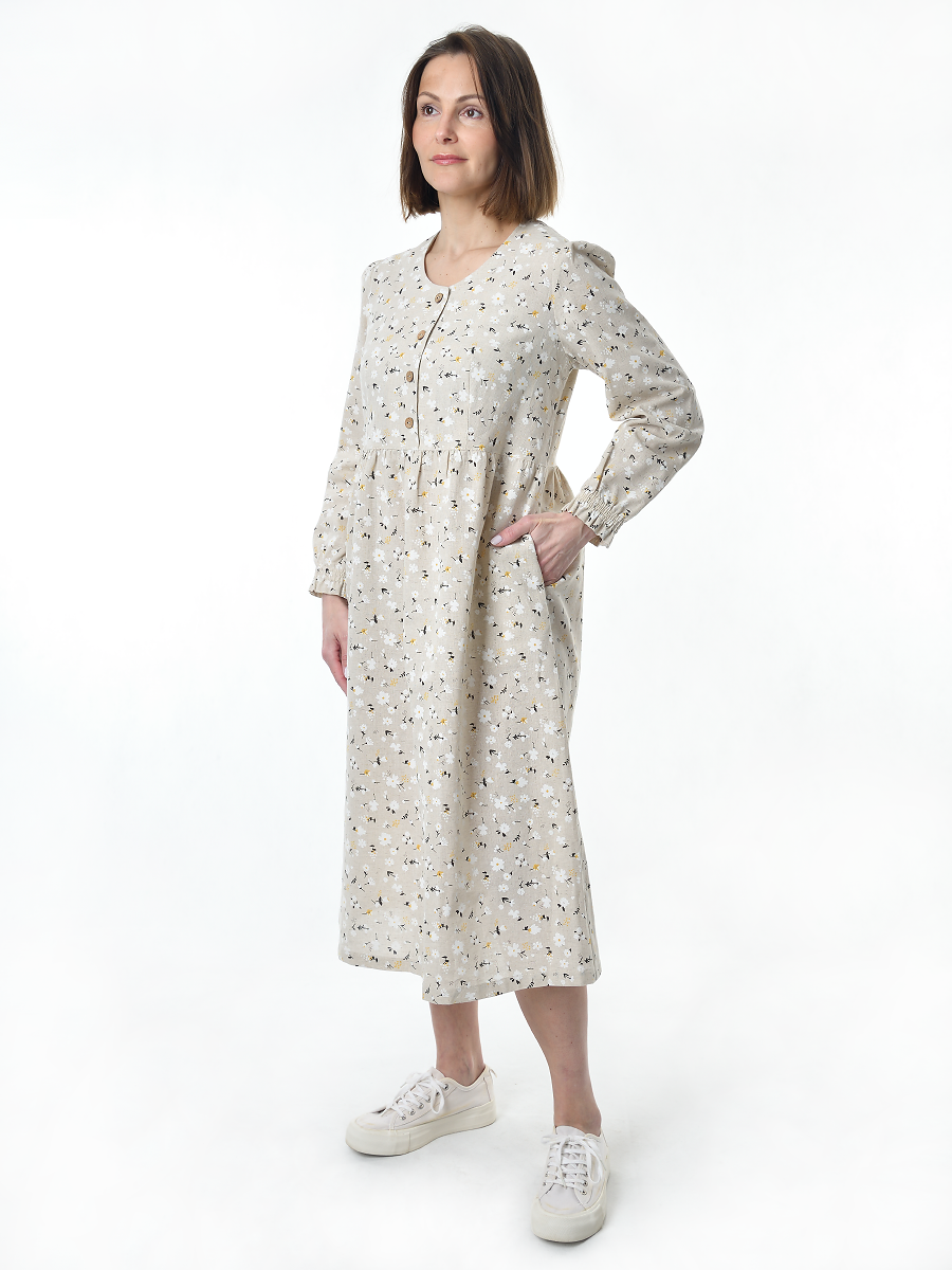 К этому платью в комплект можно добавить накладной льняной воротник белый;