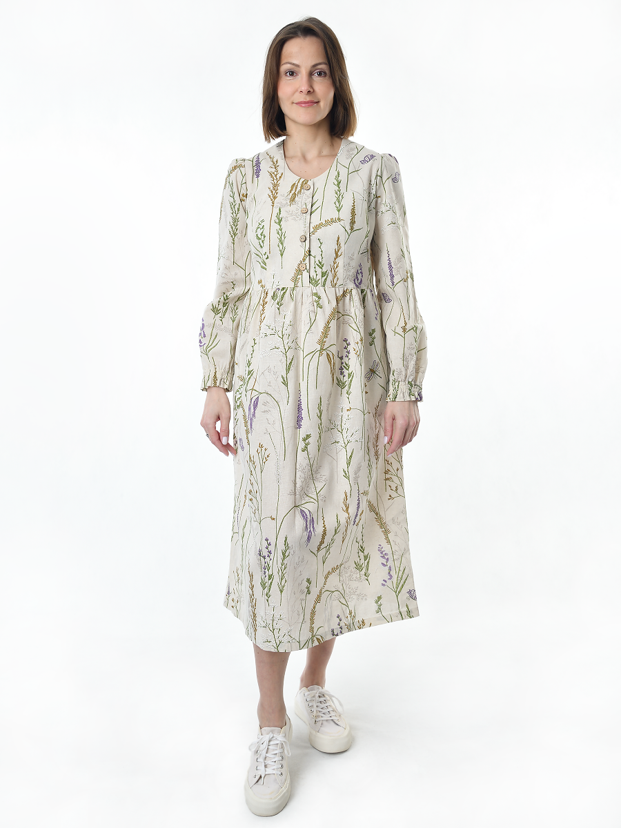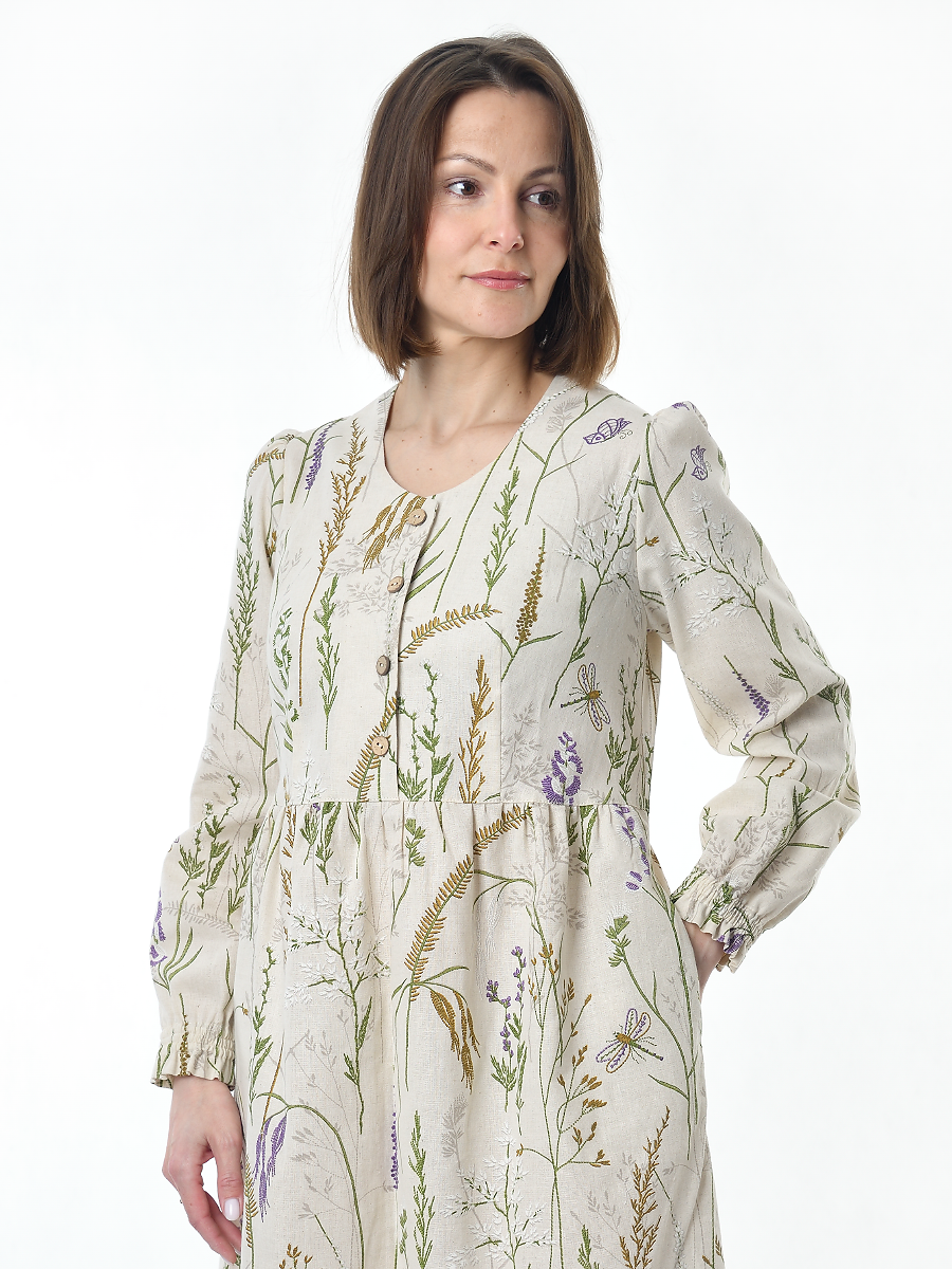 К этому платью в комплект можно добавить накладной льняной воротник белый;