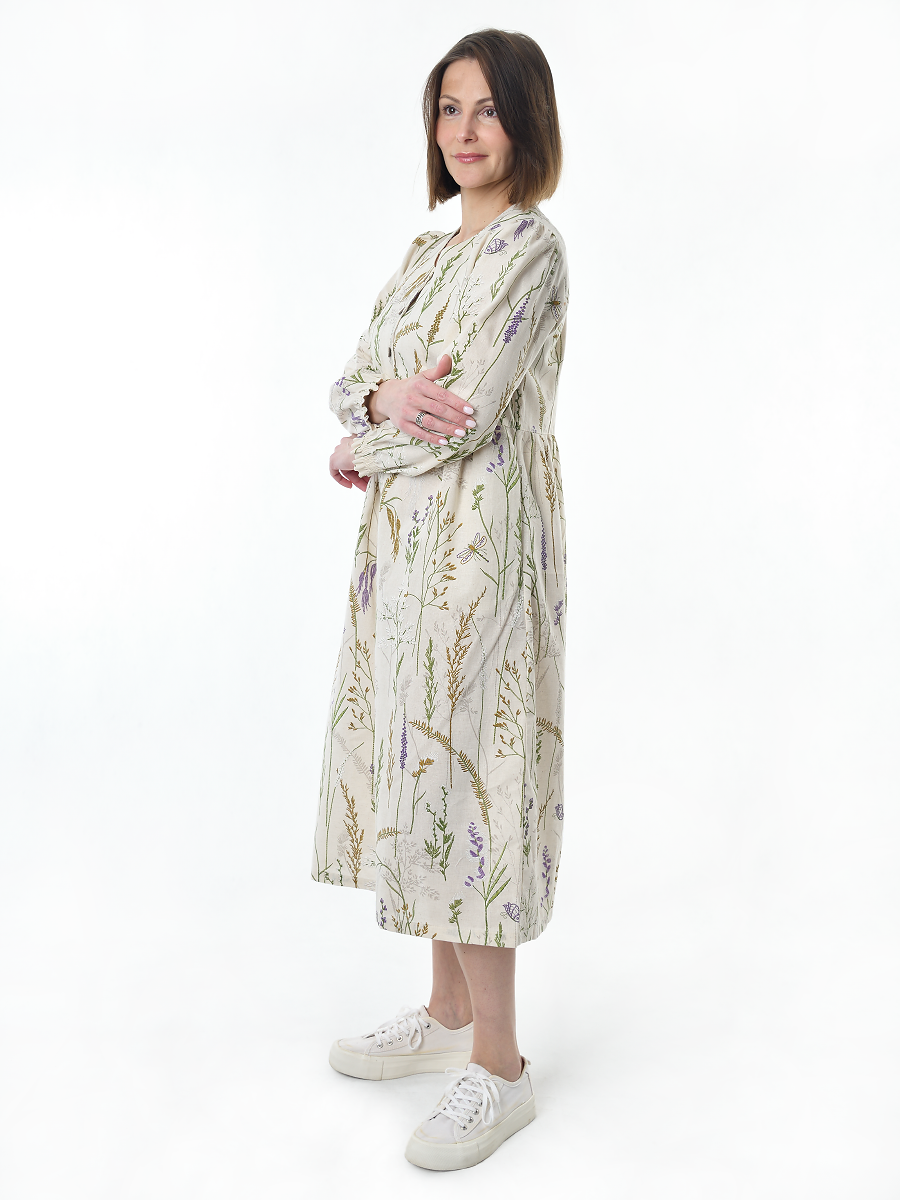 Платье льняное женское #117, "шалфей" изготавливается из ткани с составом 50% лён, 50% хлопок.