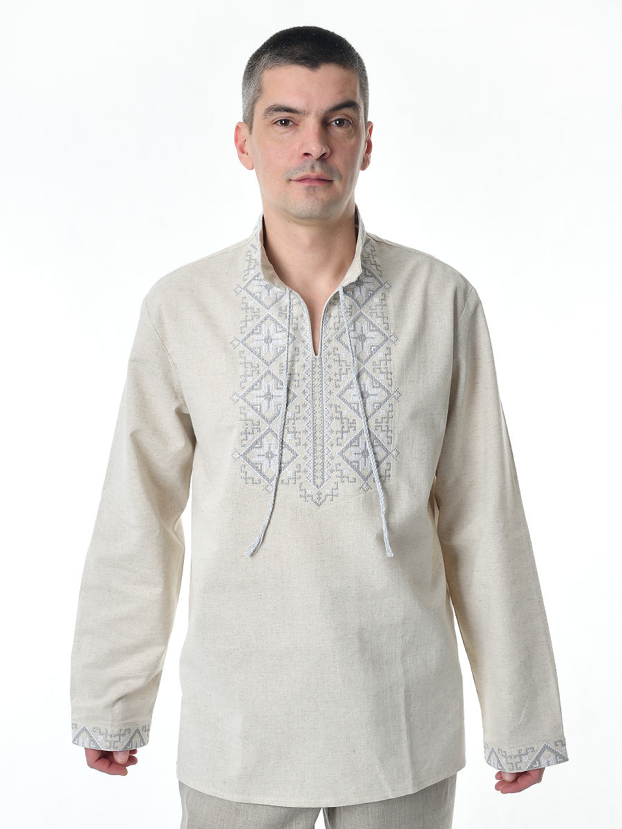 • Код товара:Рубашка льняная мужская, с вышивкой, светло-серая